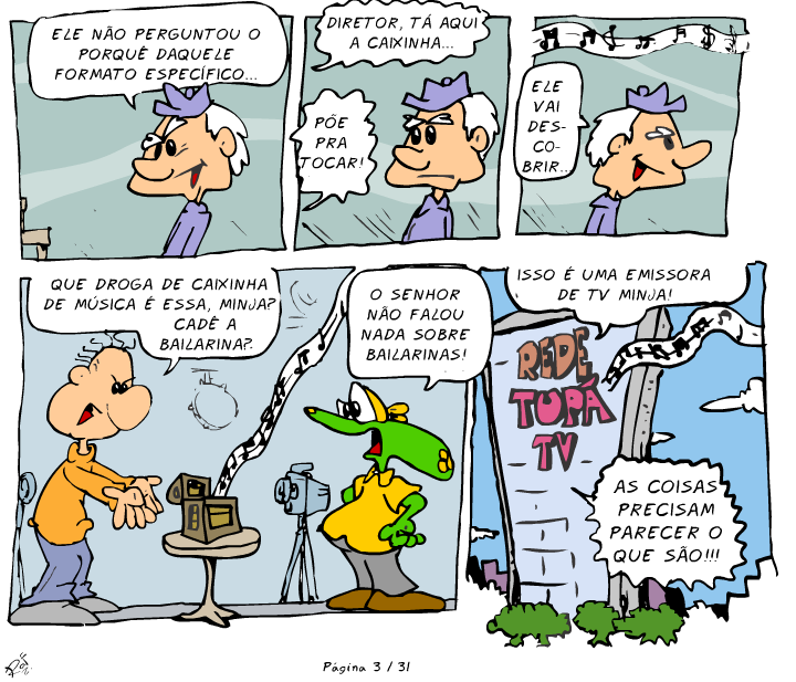 Hist�ria em Quadrinhos - Sapo Brothers em: Para que serve uma caixa de m�sica em forma de ba�?